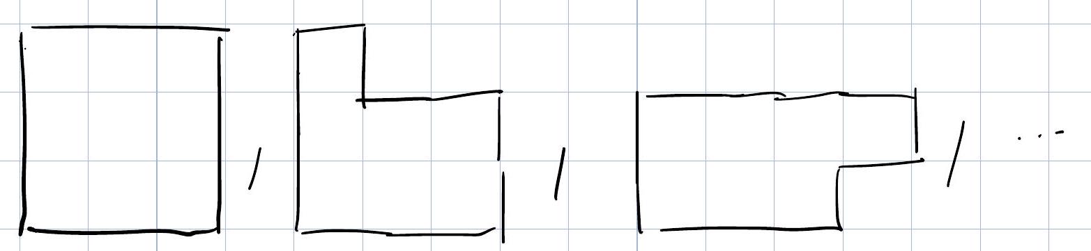 But in 2D, there are many ways to make a wall of length \(l\). For example, for \(l=12\):