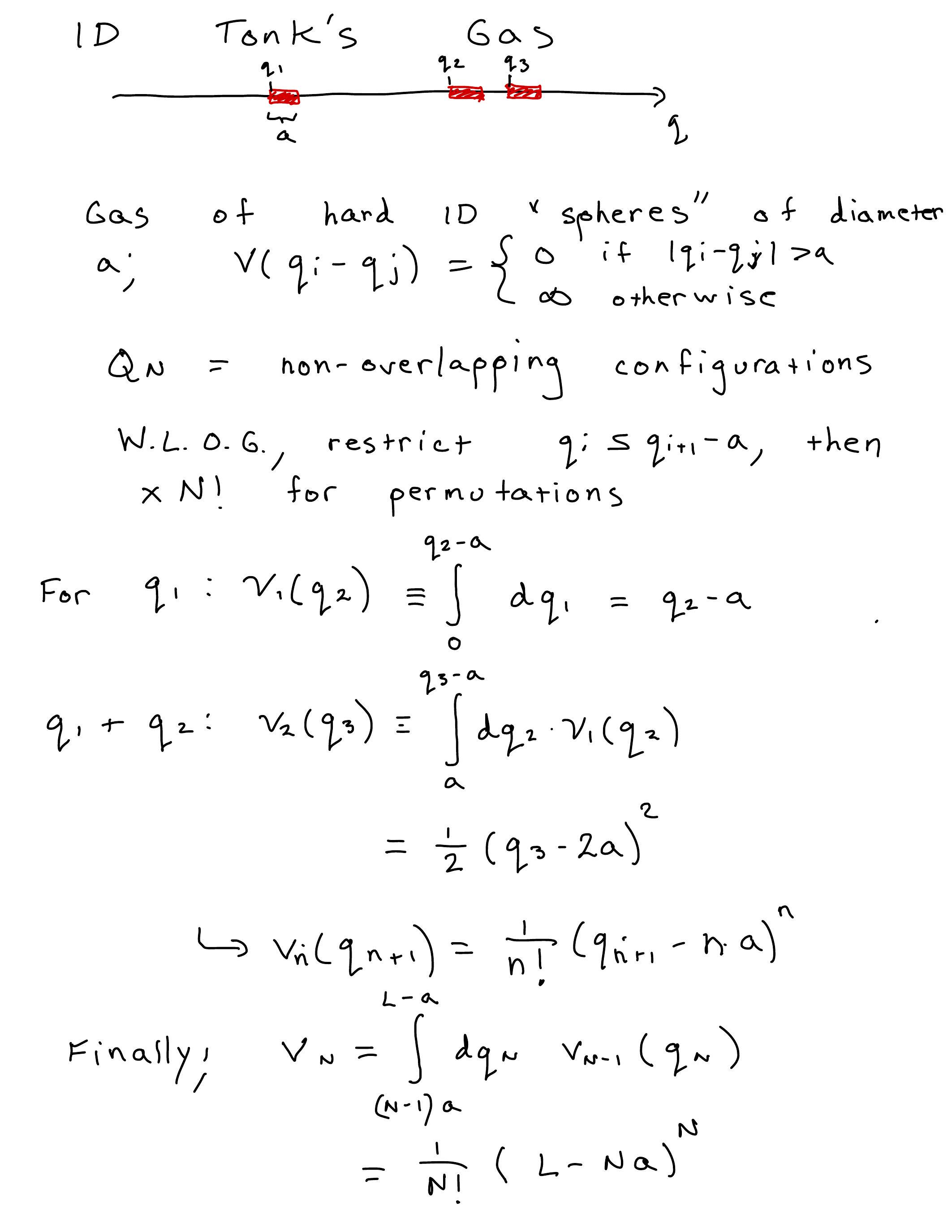 Gas of hard 1D “spheres” (intervals) of “volume” (length) \(a\). (Tonk’s gas)