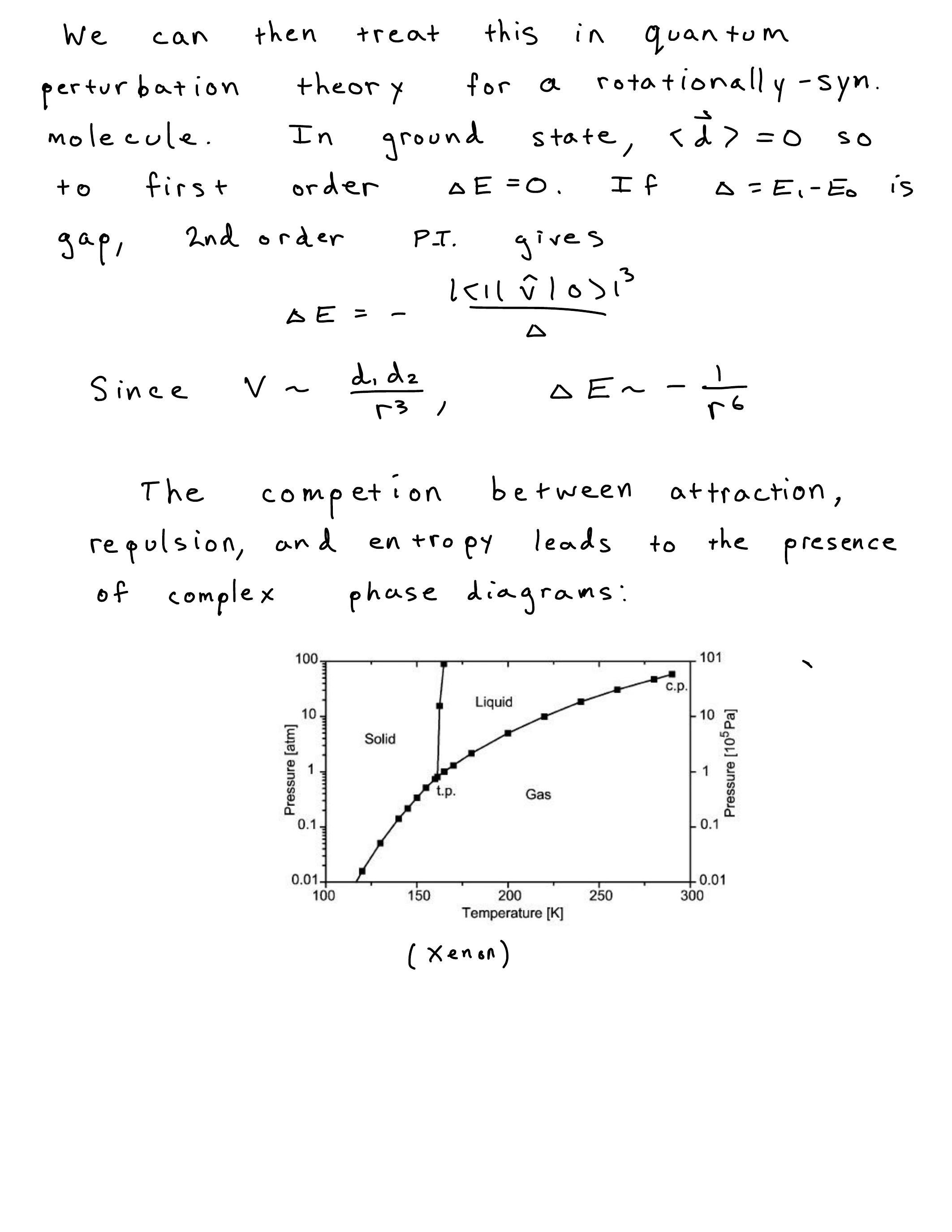 can’t be exactly computed in general. We need approximations: molecular dynamics(HW), monte carlo (soon), perturbation theory in \(N / V\) (Mayer Cluster expansion, see text), mean field theory, variational approximations (today).